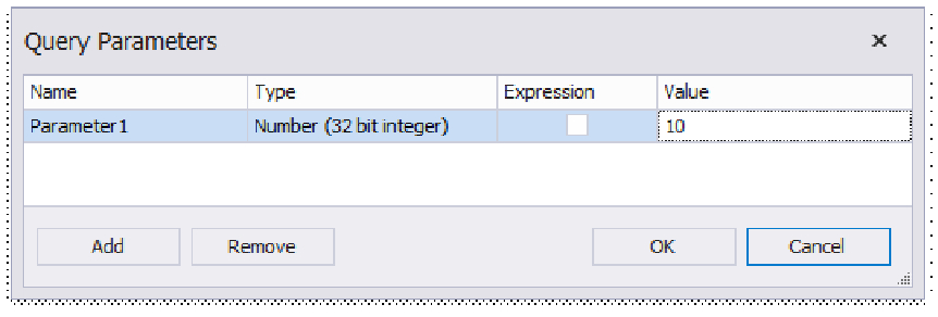 Specifies the query parameter's actual value (a static or dynamically calculated). If the Expression option is enabled, you can assign a report parameter or an expression that can also include a report parameter.